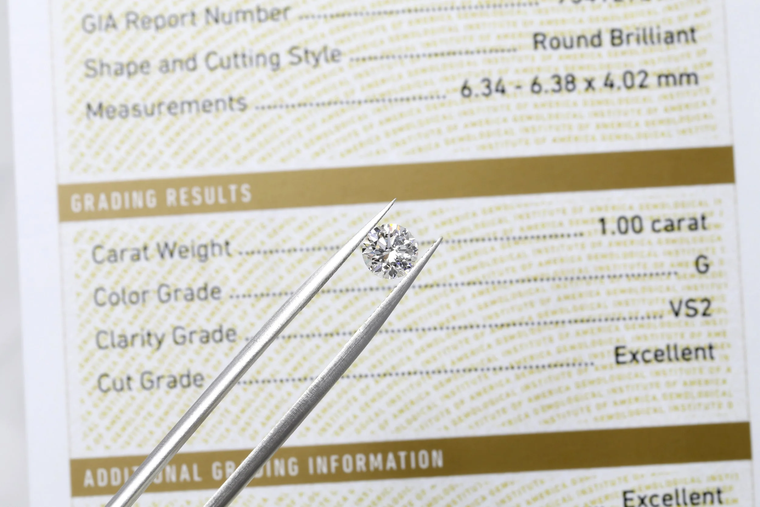 GIA certified natural 1.00ct diamond: G colour, VS2 clarity, Excellent cut