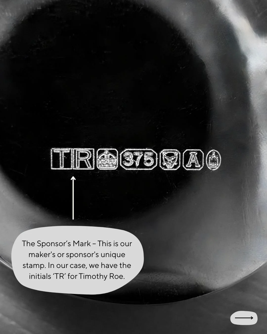 This is the office who tested the ingredients, the quality and who hallmarked the item. In our case, at Timothy Roe Fine Jewellery, we use London as our assay office so we have a leopard’s head. If we had any enquiries about our items we would need to contact this office.