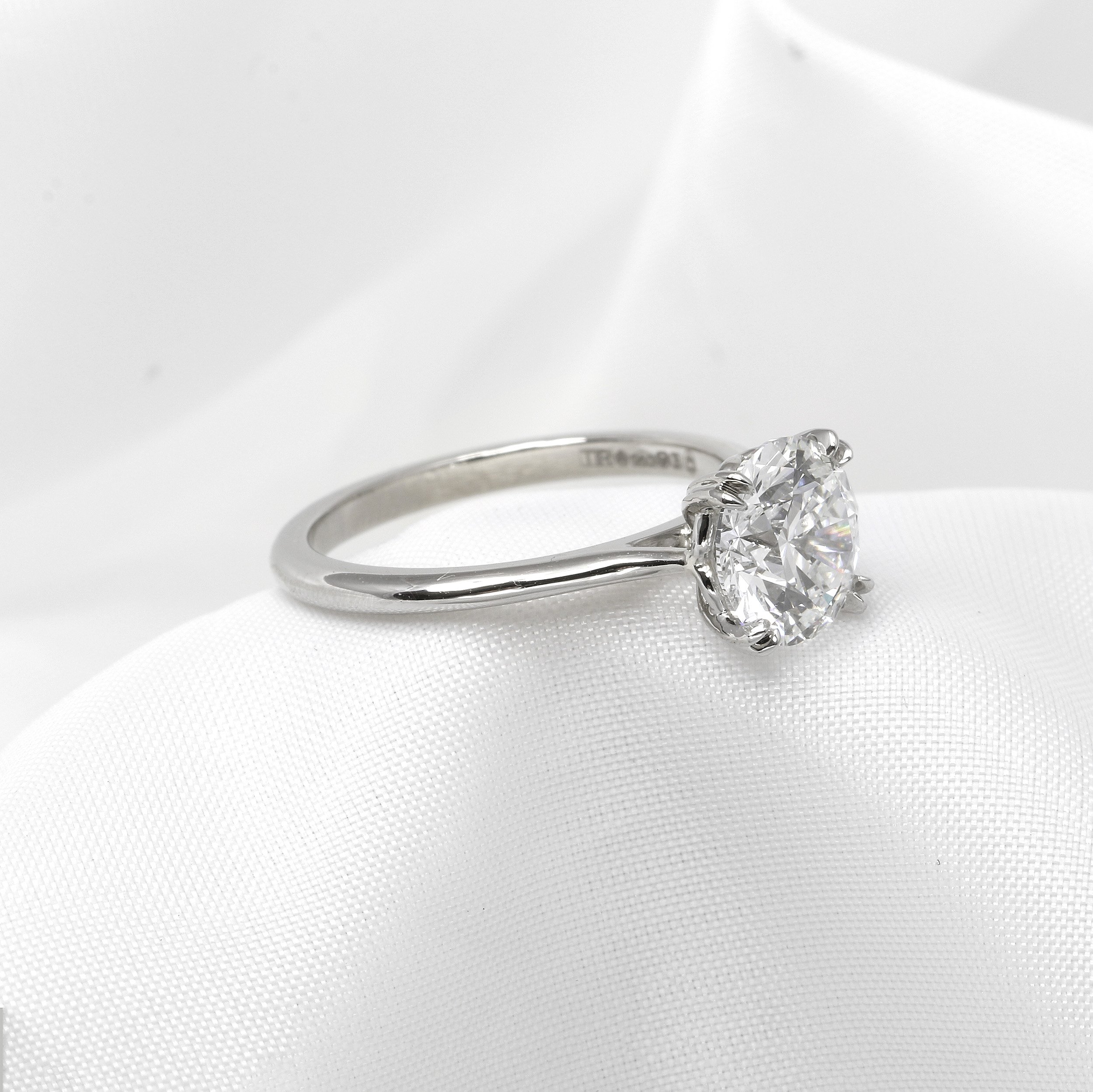 An elegant solitaire ring showcasing a stunning 2.00ct lab created round brilliant cut diamond, expertly set in luxurious platinum. Finished with a classic claw setting allowing maximum light to enhance the diamond’s sparkle.