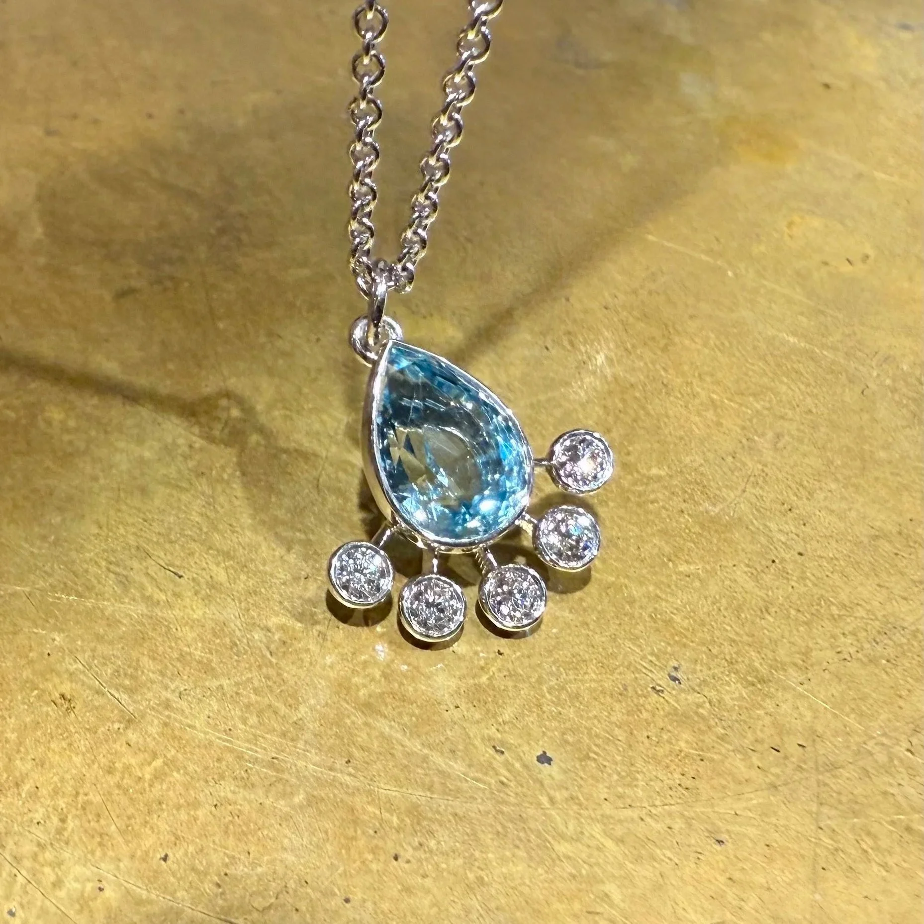Aquamarine and Diamond Pendant in White Gold