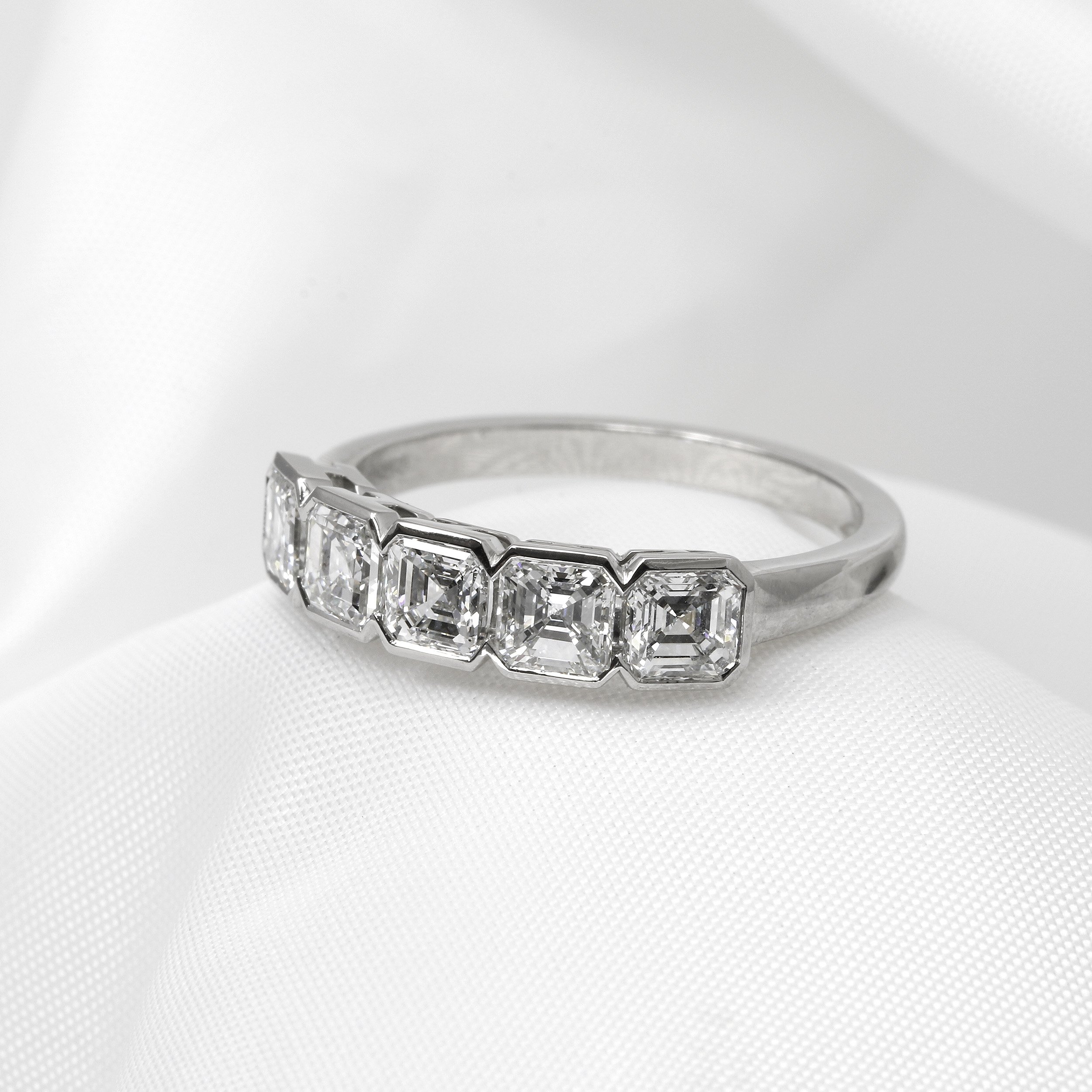 Asscher Cut Diamond Five Stone Ring in Platinum