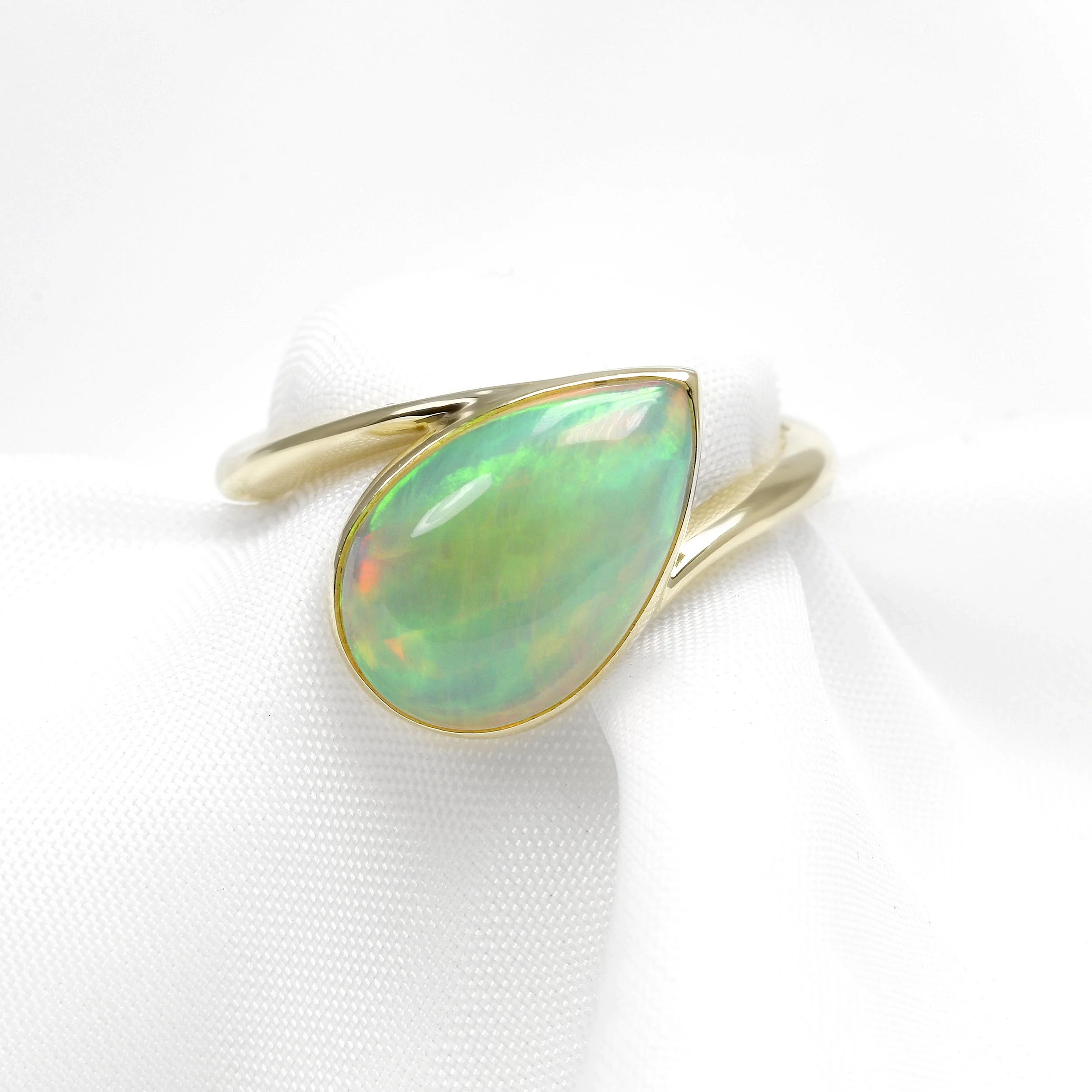 Cabochon Pear Shape Opal Ring in Yellow Gold