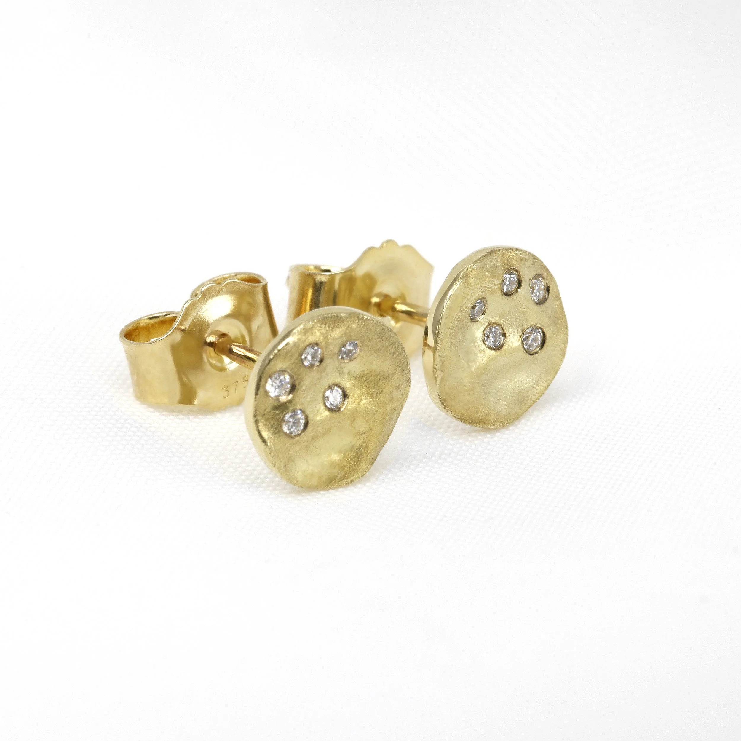 Diamond Molten Disc Stud Earrings in 9ct Yellow Gold