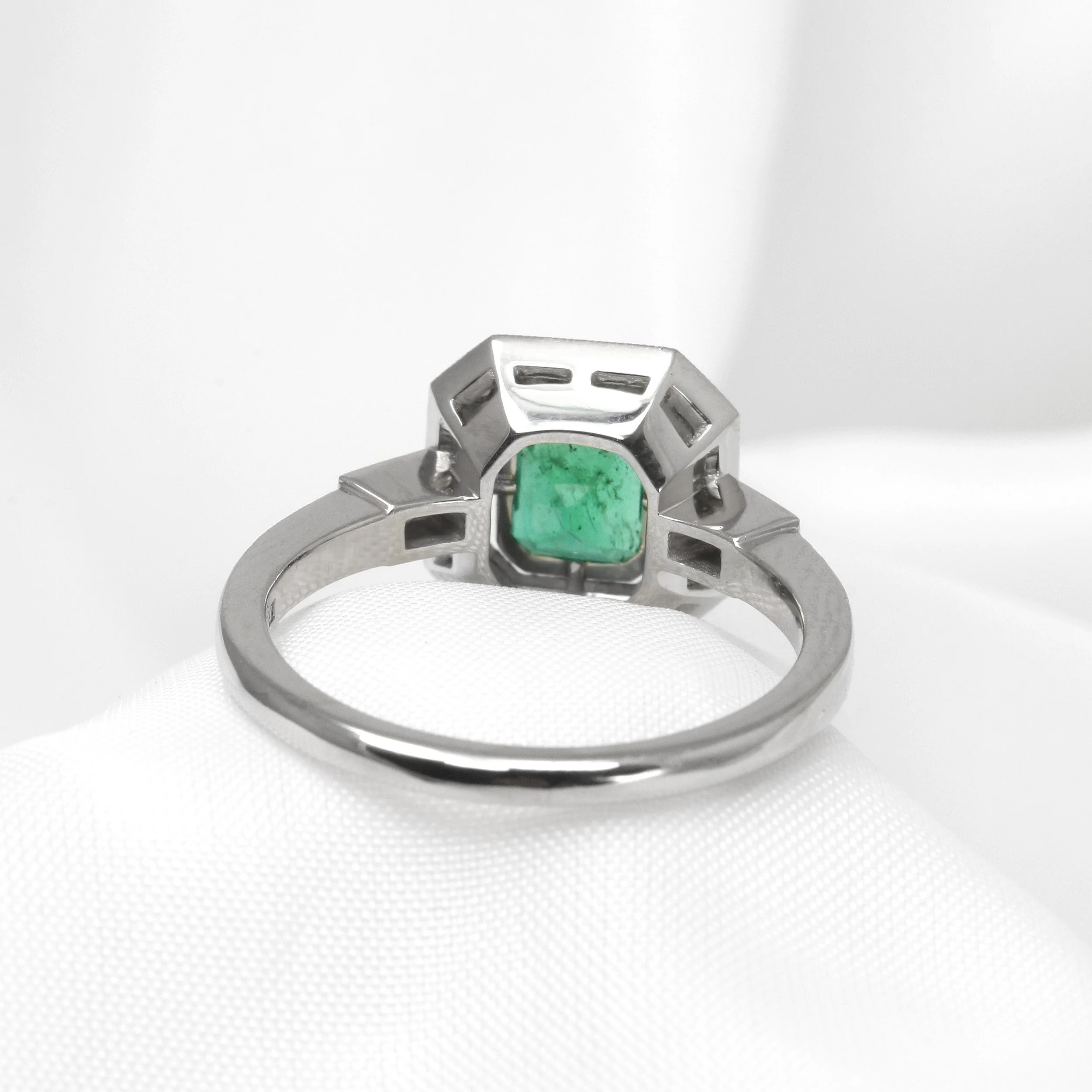Emerald and Diamond Halo Ring in Platinum