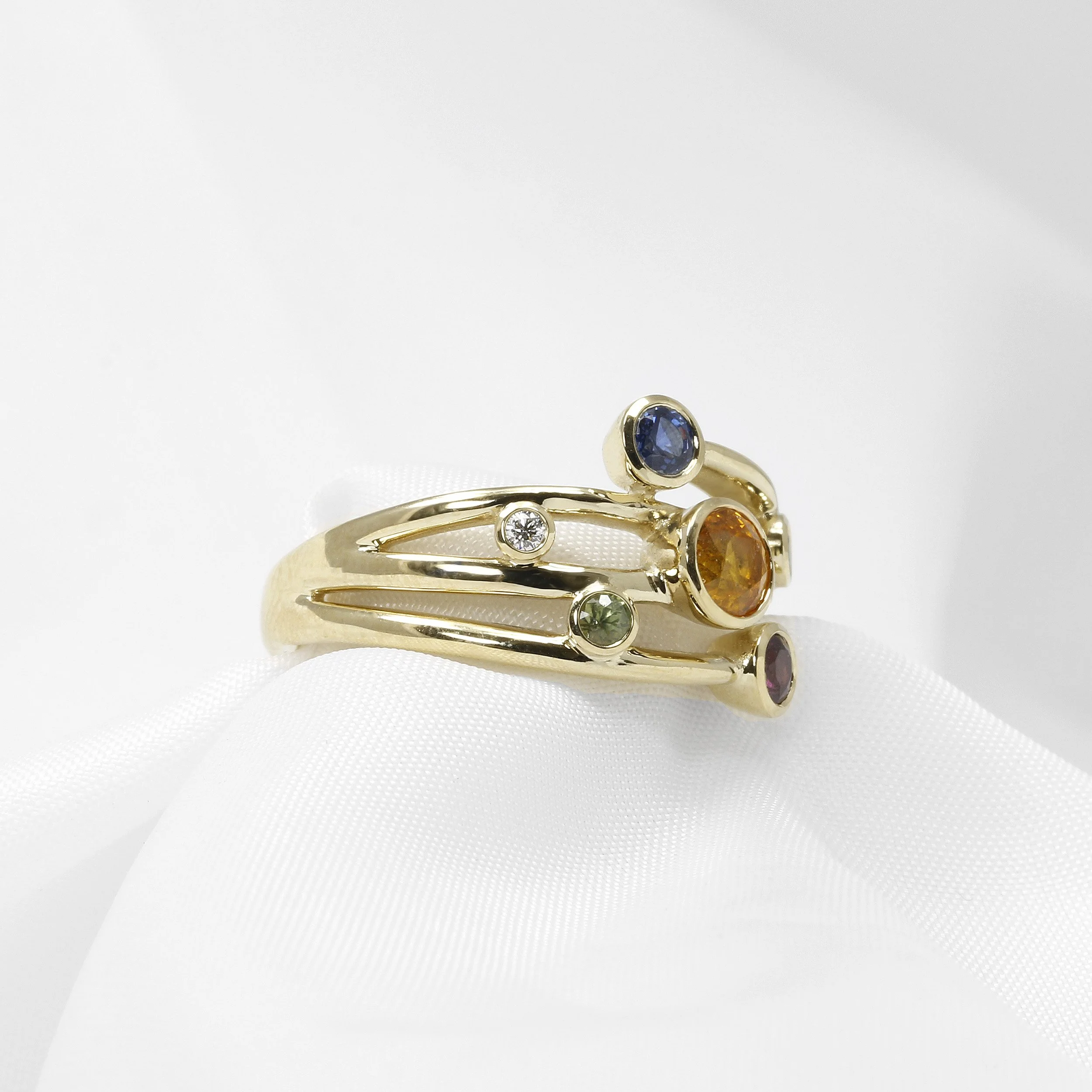 Multi Band Mixed Gemstone Ring in 9ct Yellow Gold
