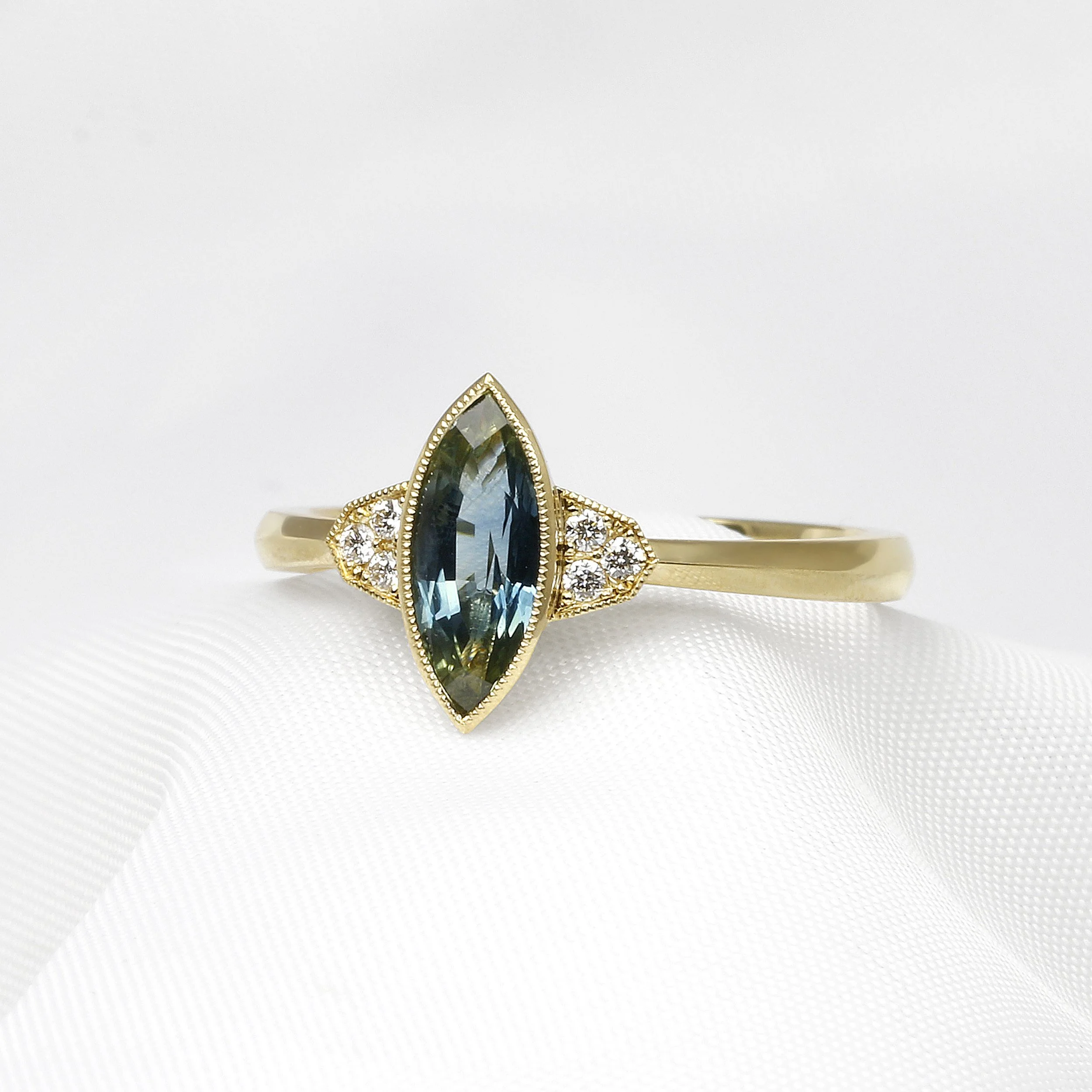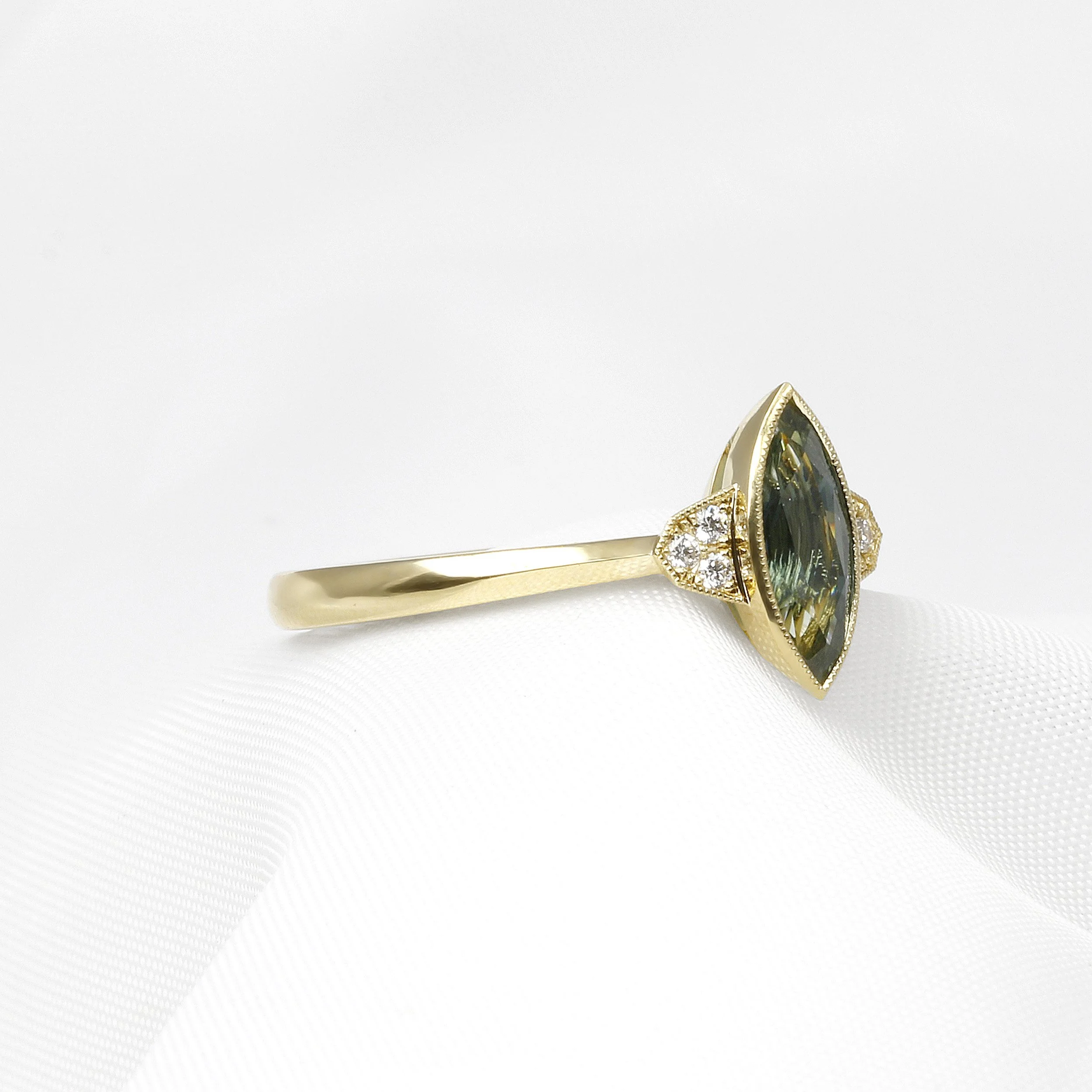 Parti-Green Sapphire & Diamond Ring in Yellow Gold