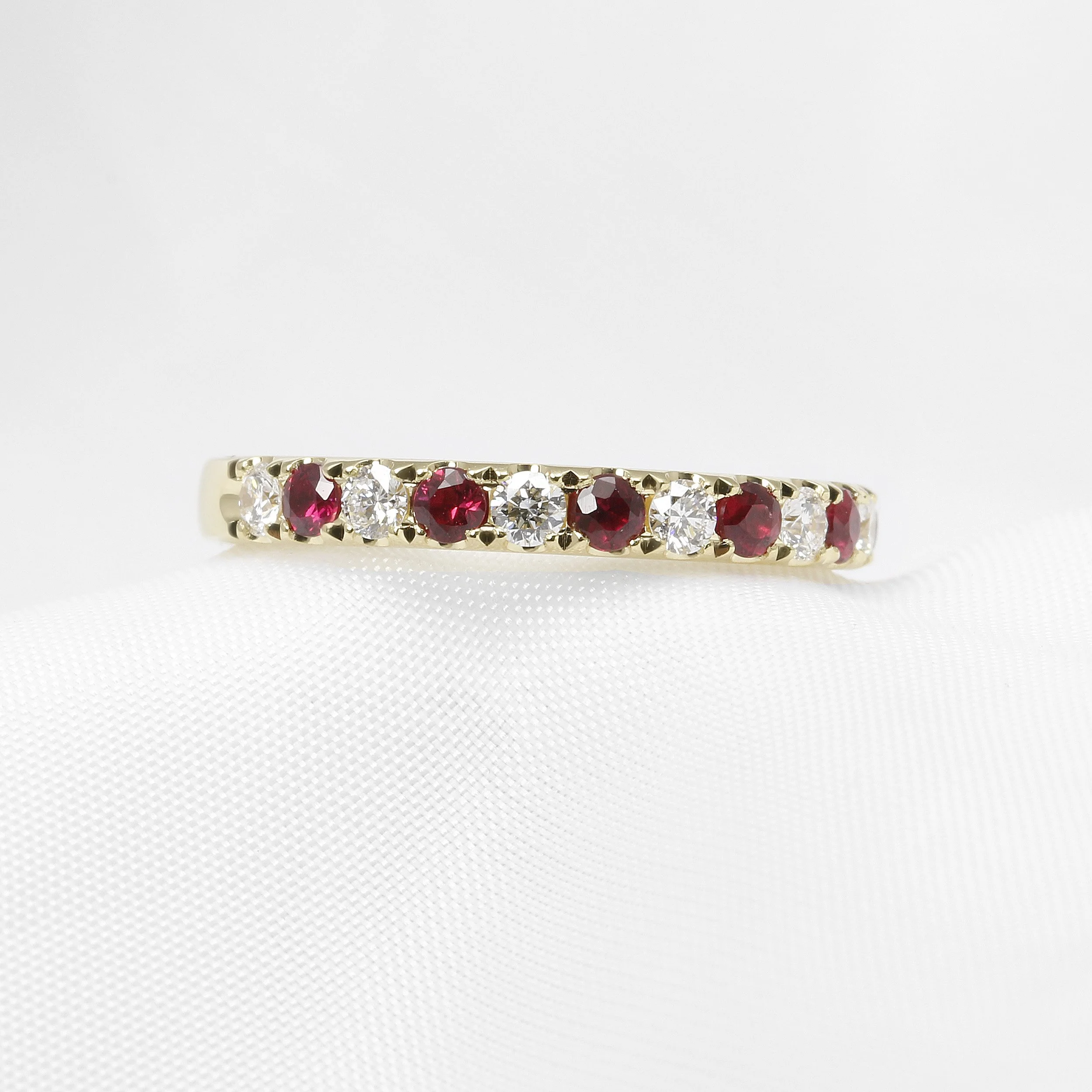 Ruby and Diamond Half Eternity Ring in 18ct Yellow Gold