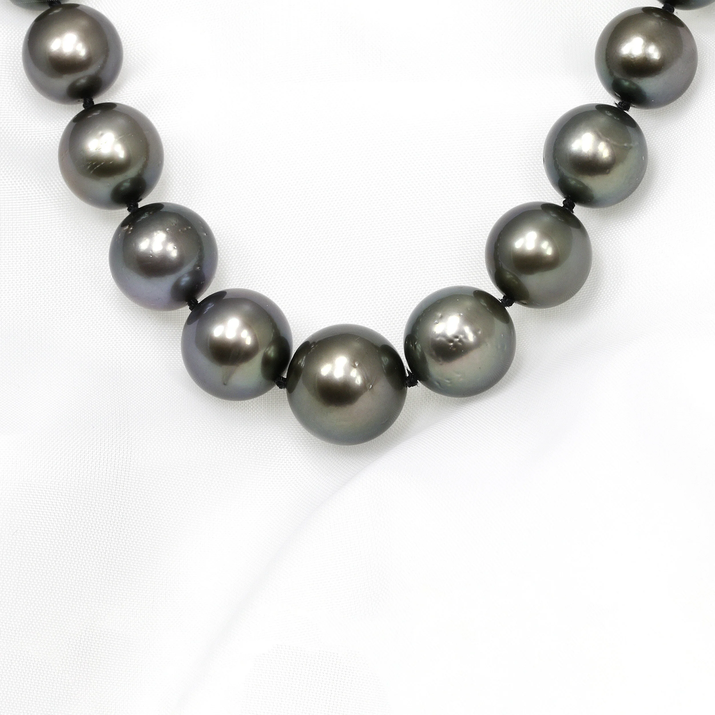 A single strand graduated Tahitian pearl necklace, featuring a magnetic clasp.