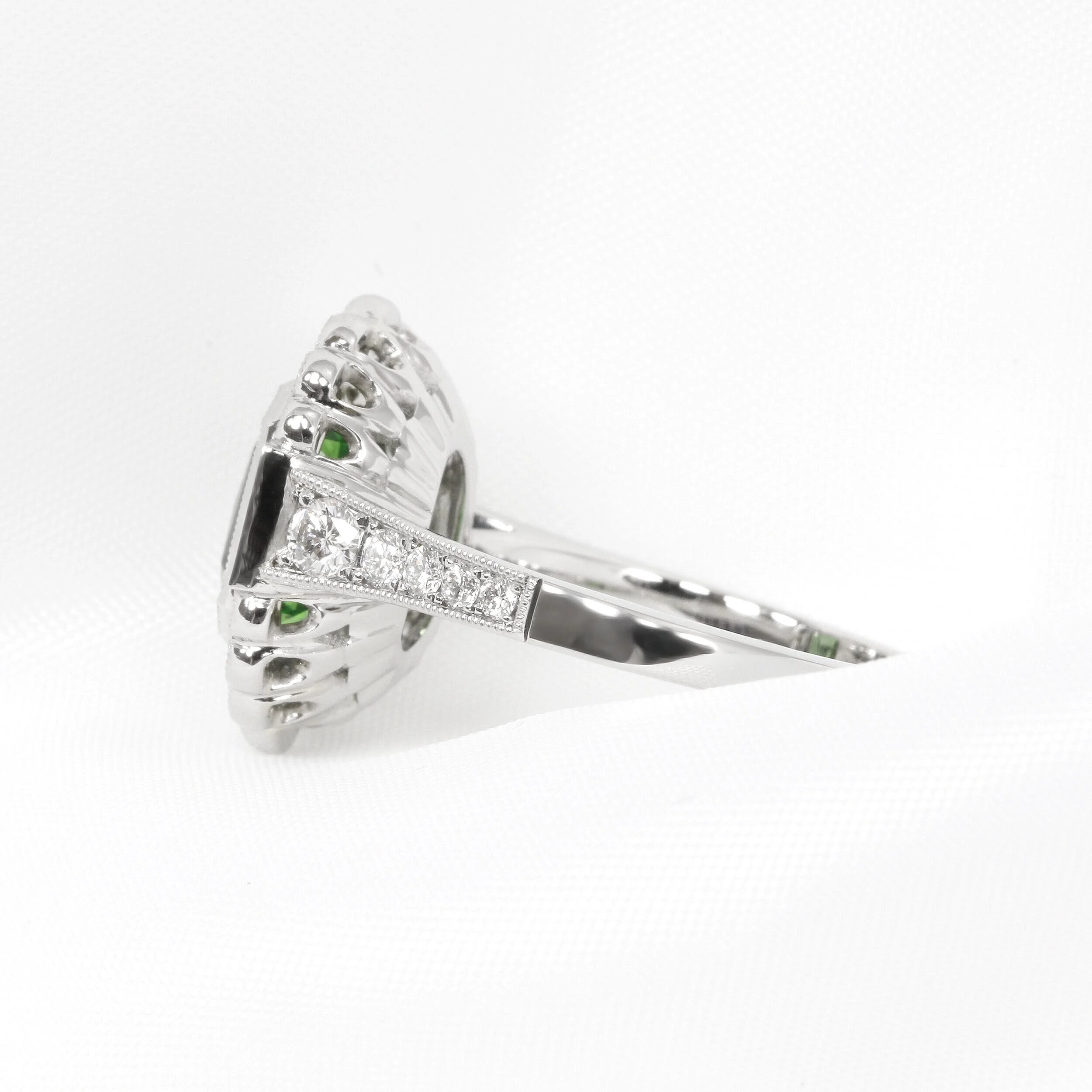 Tsavorite Garnet and Diamond Cluster Ring in Platinum
